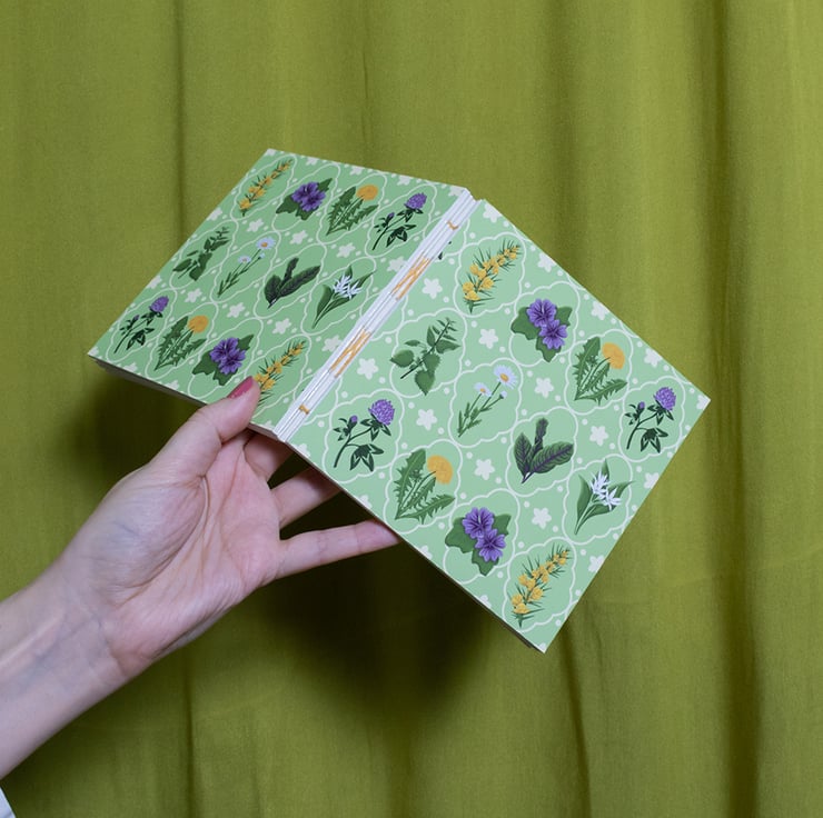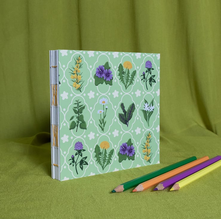This lovingly handmade hardcover sketchbook featuring a spring foraging pattern cover with a soft-touch finish is the perfect tool for any creative who's a nature enthusiast.