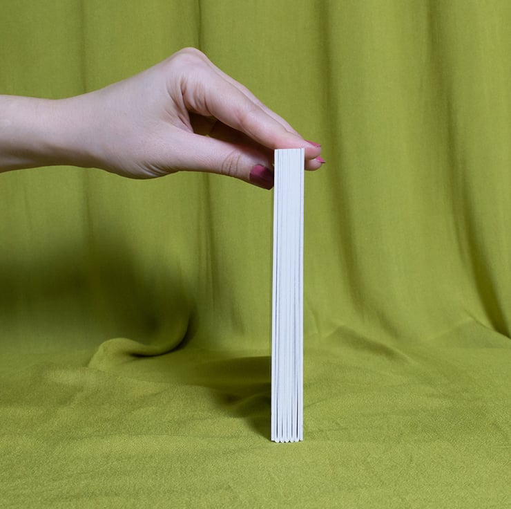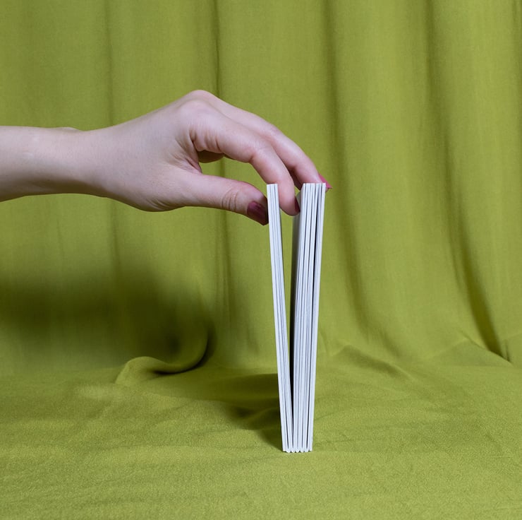 Paper: 170gsm recycled cartridge paper. Smooth yet toothy surface perfect for drawing, sketching, and mixed media work. The paper handles dry techniques such as pencil, charcoal, and pastel, as well as light ink and wash applications and has a natural, slightly off-white tone. Due to being 100% recycled you might find specks on some pages.