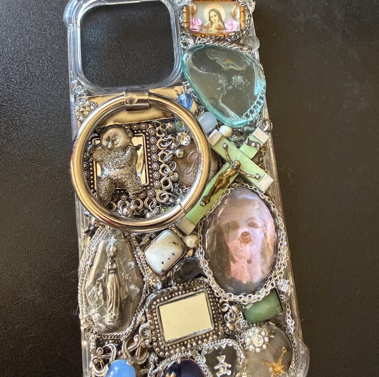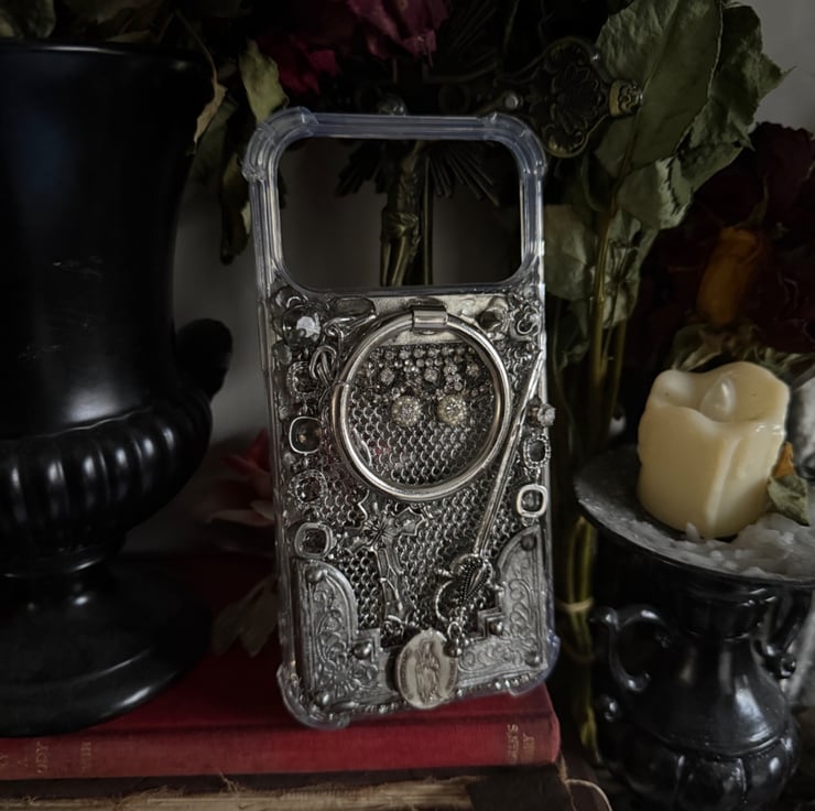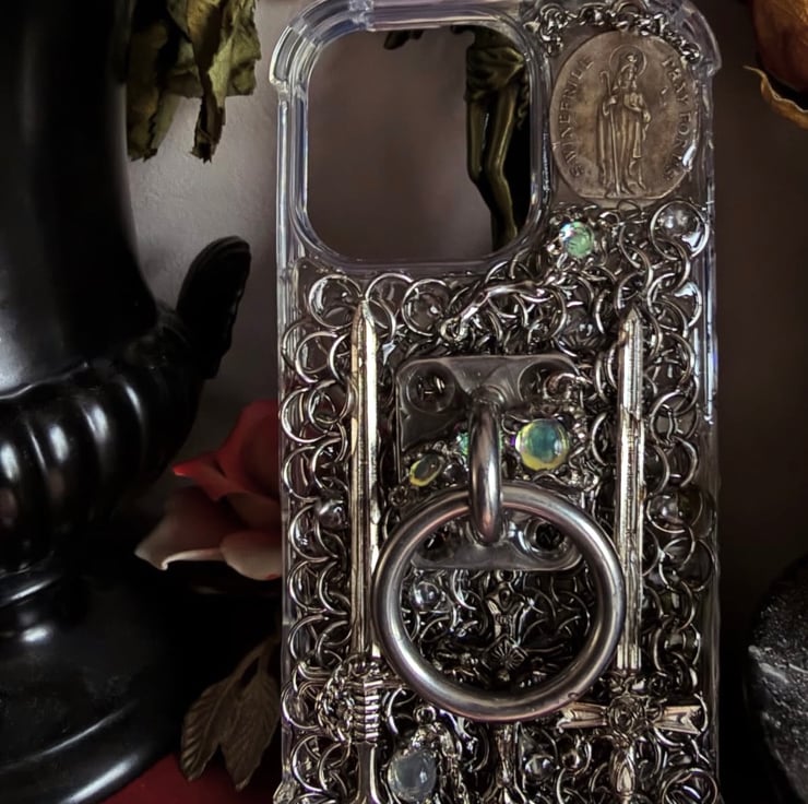 Customised phone case for any phone model. I mainly use chainmail and thrifted jewellery pieces to create a phone case only you possess. Photos are to give an idea of what I can make.