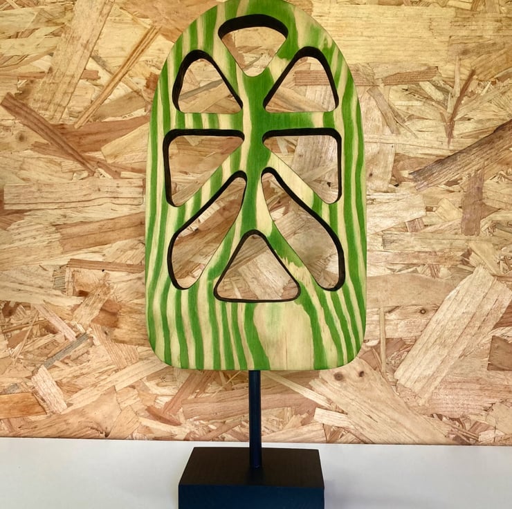 This abstract wooden sculpture is a one of a kind, produced by hand in the uk, designed to elevate your home.