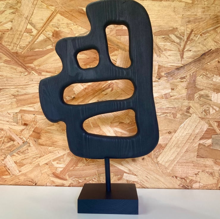 This abstract wooden sculpture is a one of a kind, produced by hand in the uk, designed to elevate your home.