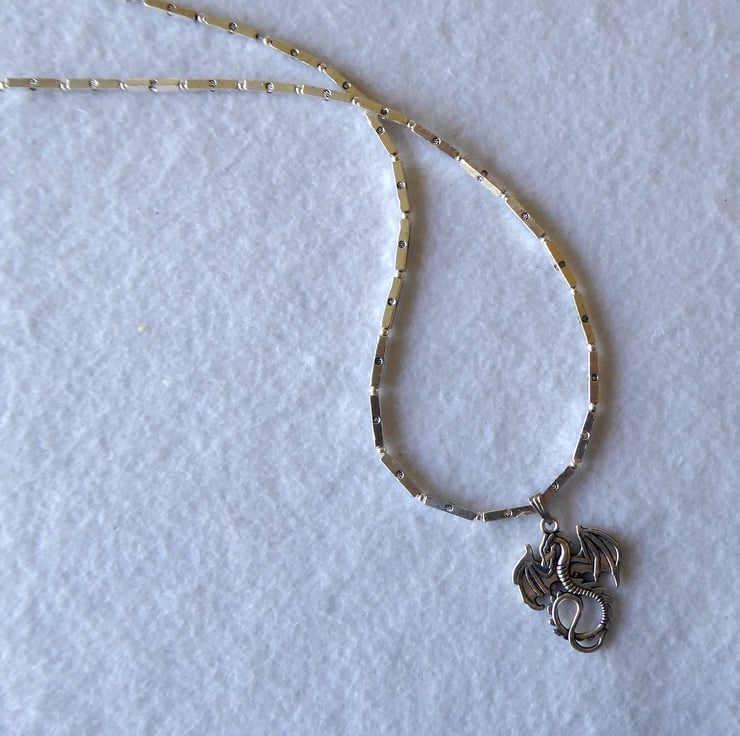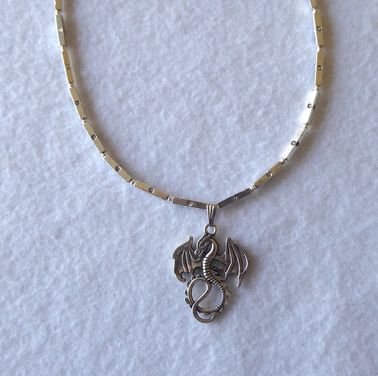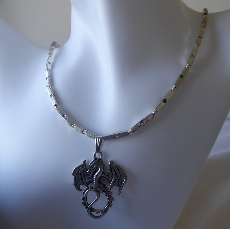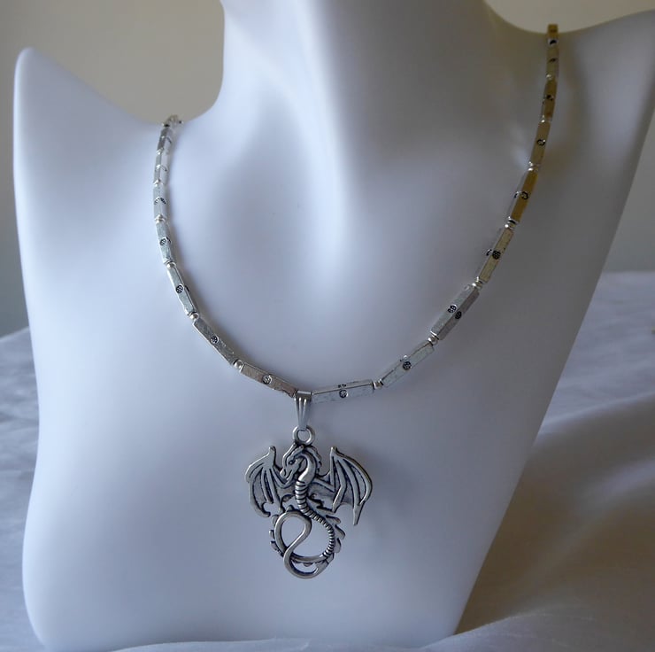 Square Tube Bead Necklace with Dragon Pendant