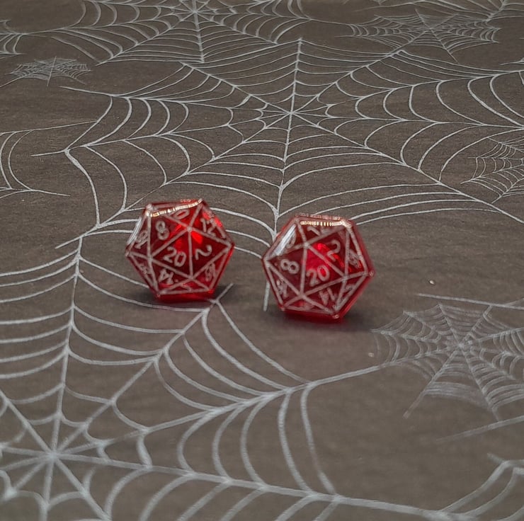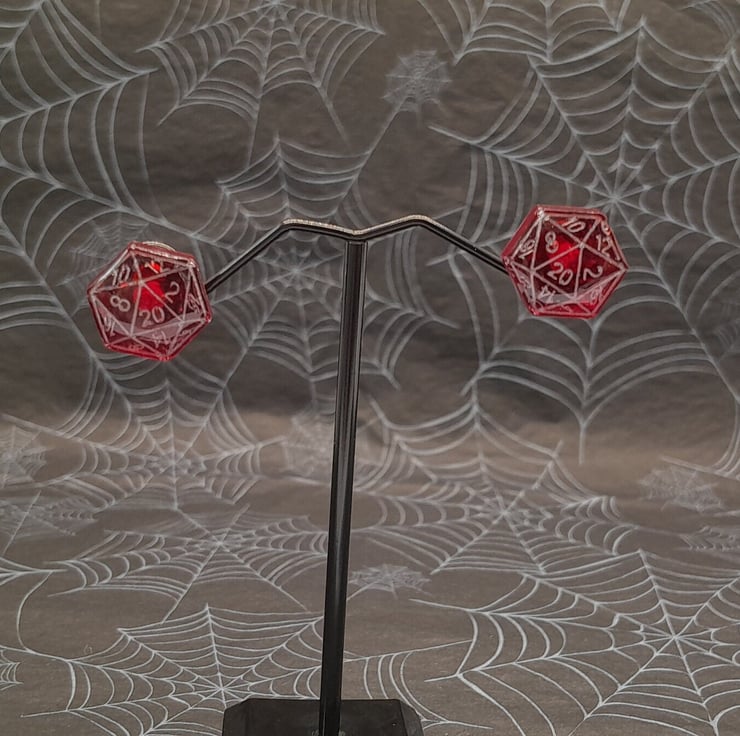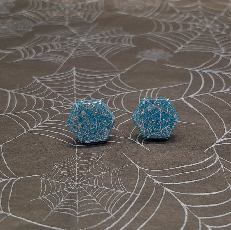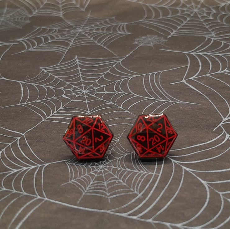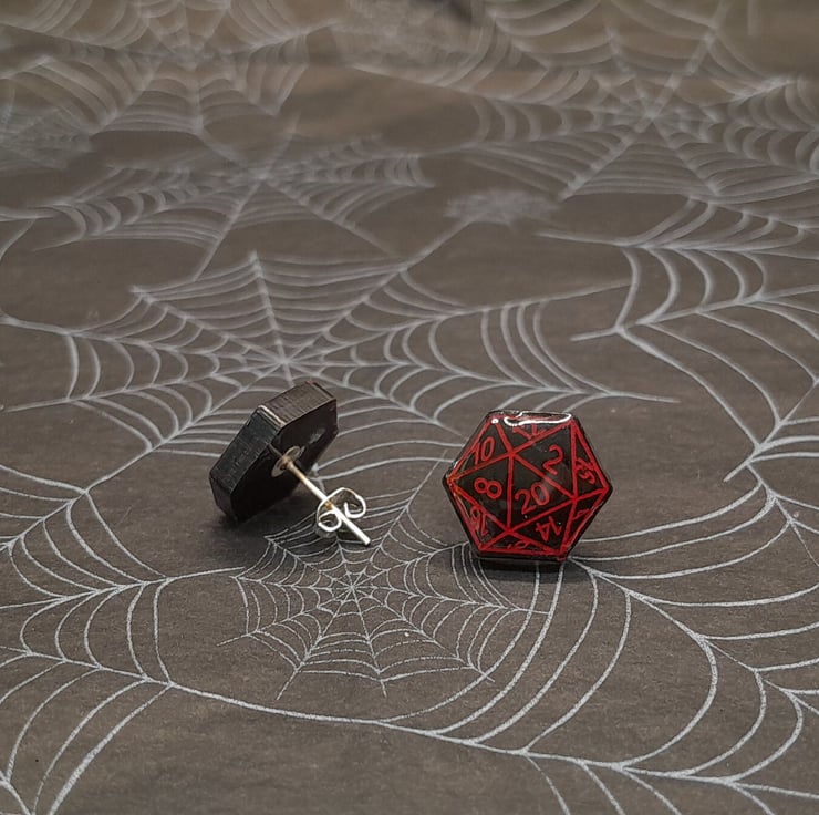 These D20 Stud earrings have two variations (more coming soon) and are made from resin coloured with ink pigment. Each one is hand painted to highlight the details of the each dice stud.