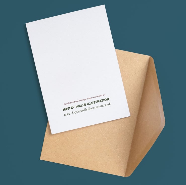 Each card is designed and printed in the UK on 300gsm recycled paper, includes a recycled kraft paper envelope, and is shipped using plastic-free packaging for sustainable shopping.