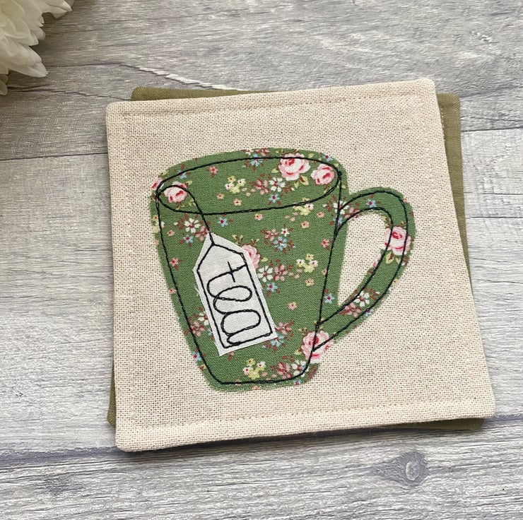 This green floral mug of tea coaster is the perfect small gift idea for a tea loving friend!