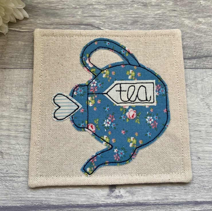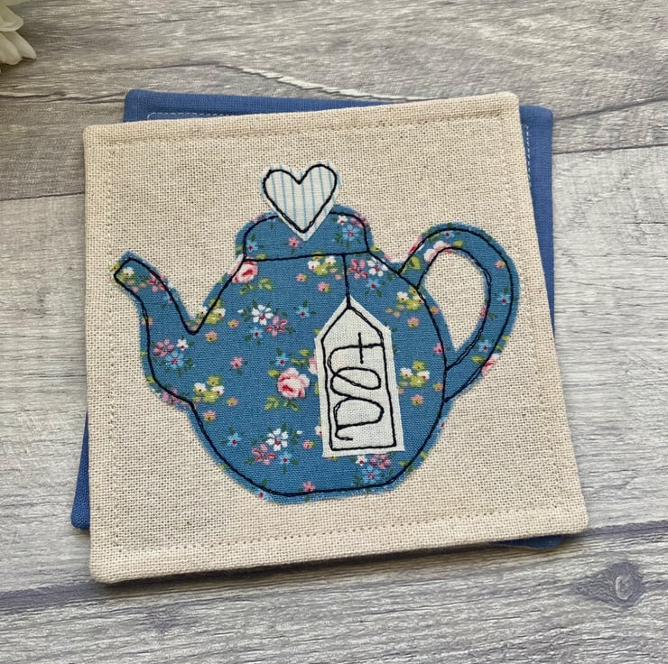 A floral blue teapot coaster, perfect as a small gift for a tea lover.