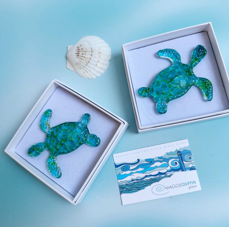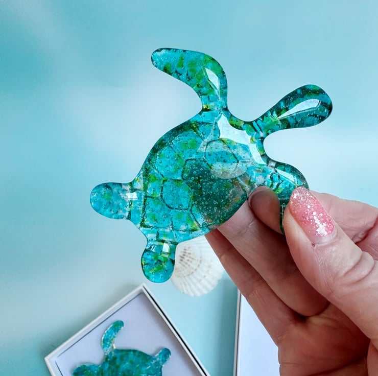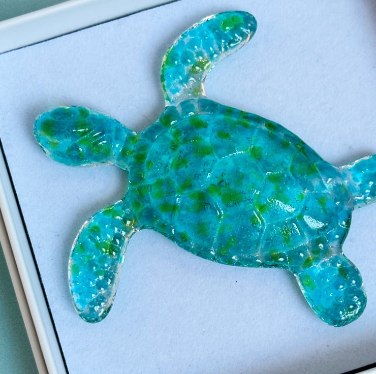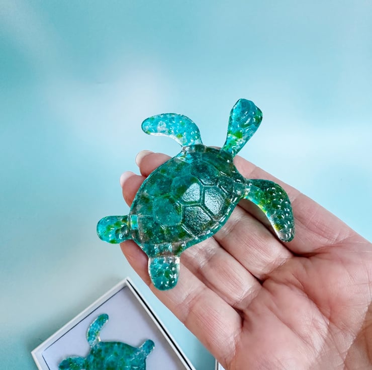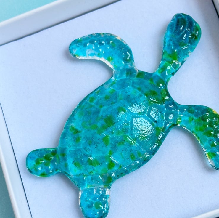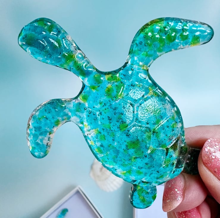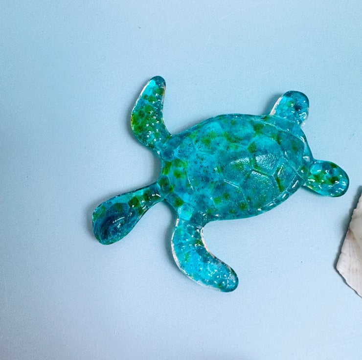 Made by using glass granules, placed in at turtle shaped ceramic mould and firing at a high temperature in the kiln.