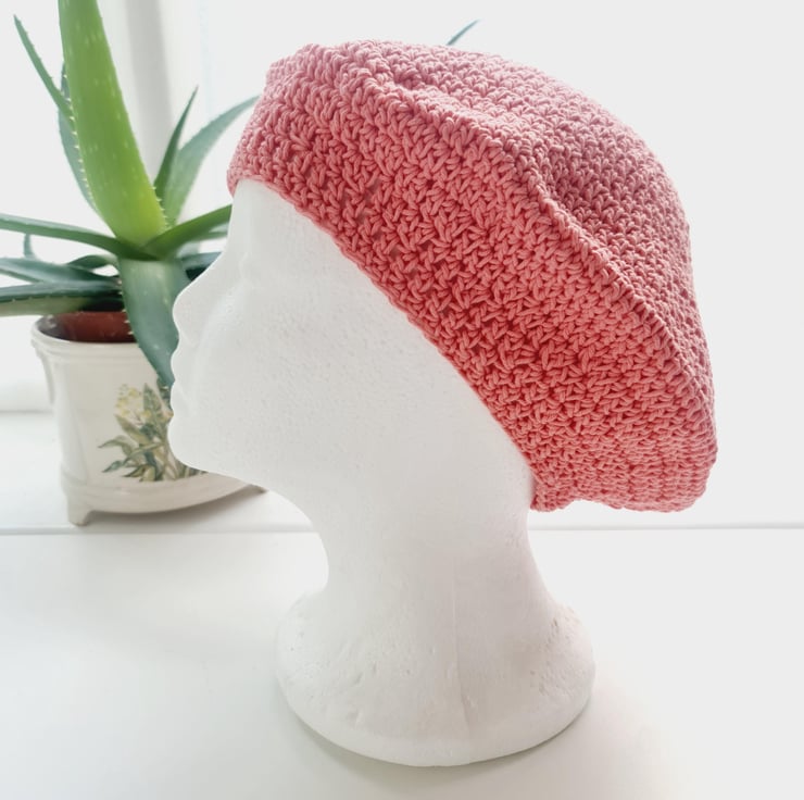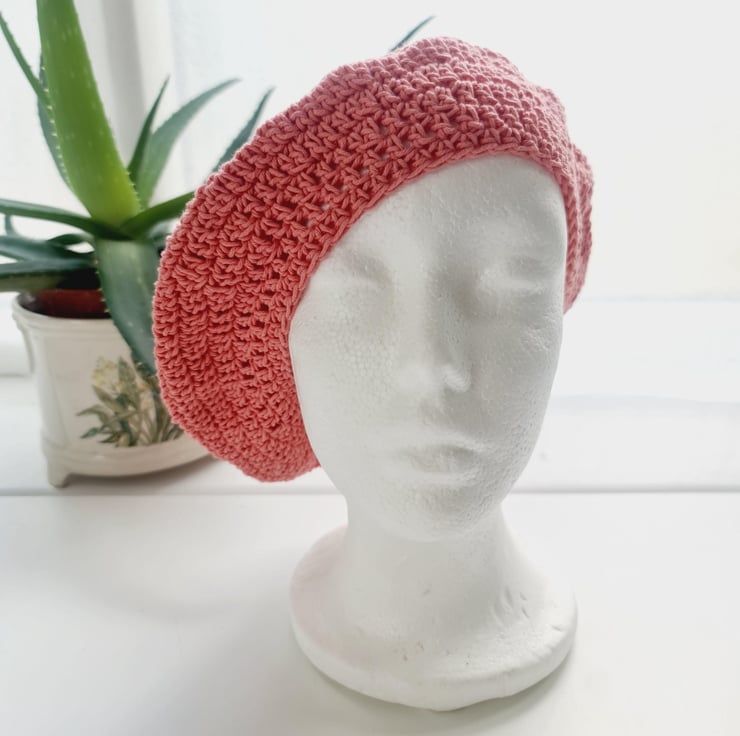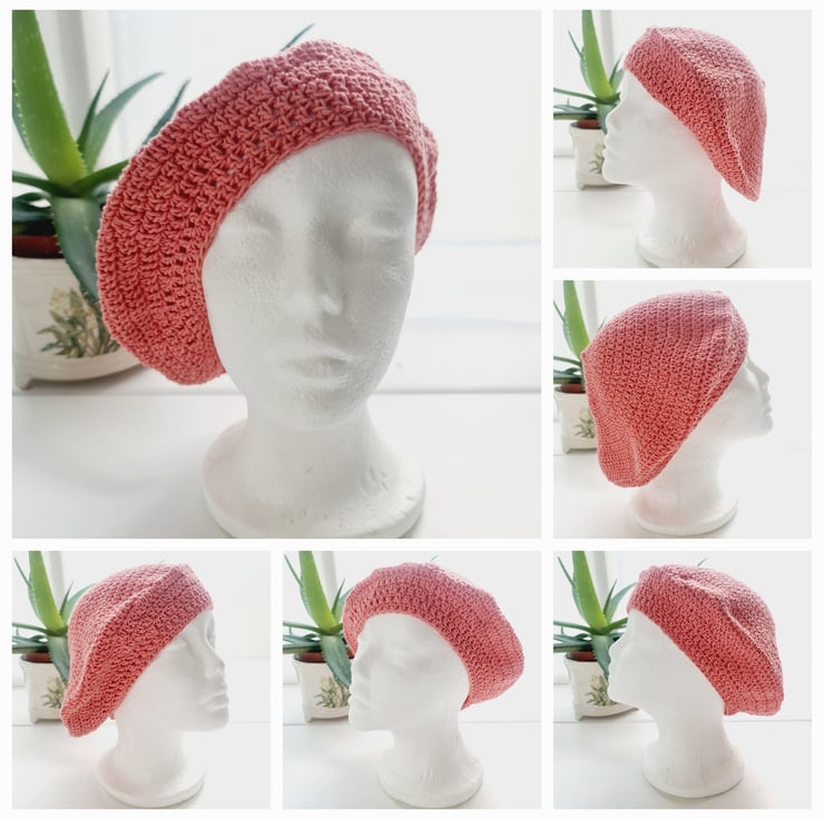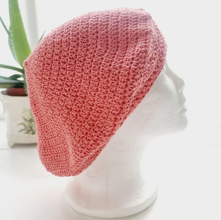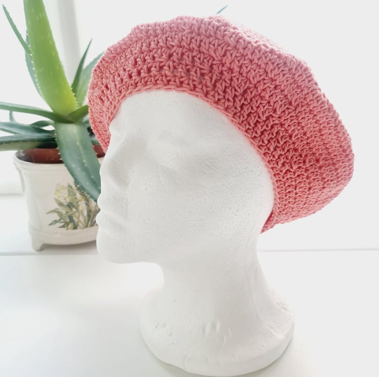 Channel your inner Parisian with this chic, handcrafted crochet beret. Made from 100% recycled cotton yarn, this beautiful pink hat is a stylish and sustainable way to add a pop of colour to any outfit. Its breathable, lightweight design makes it the perfect accessory for all seasons.