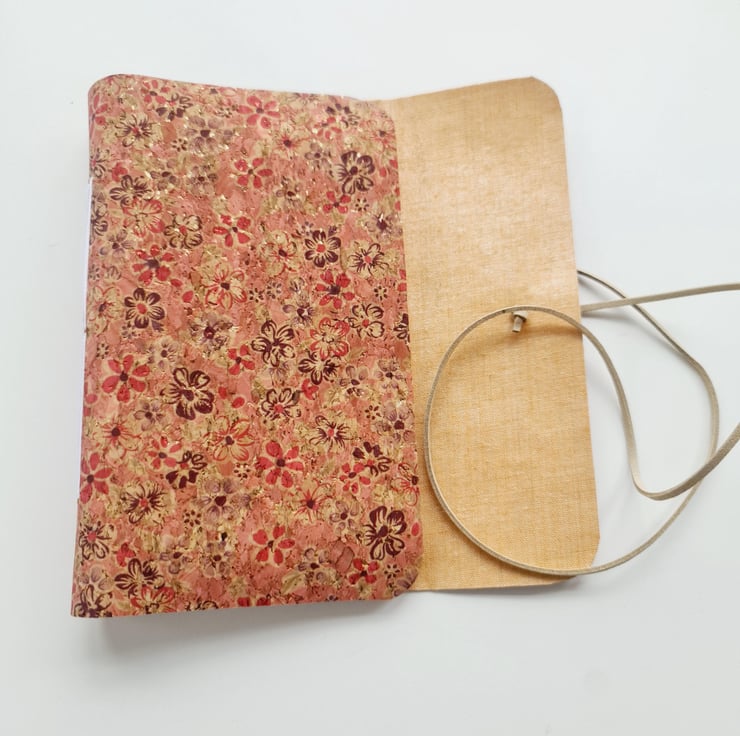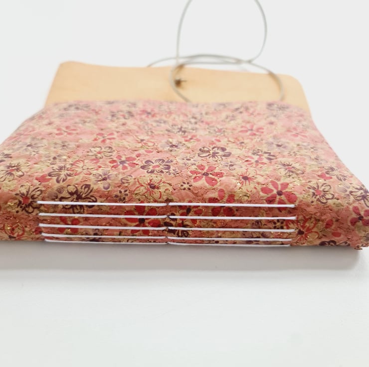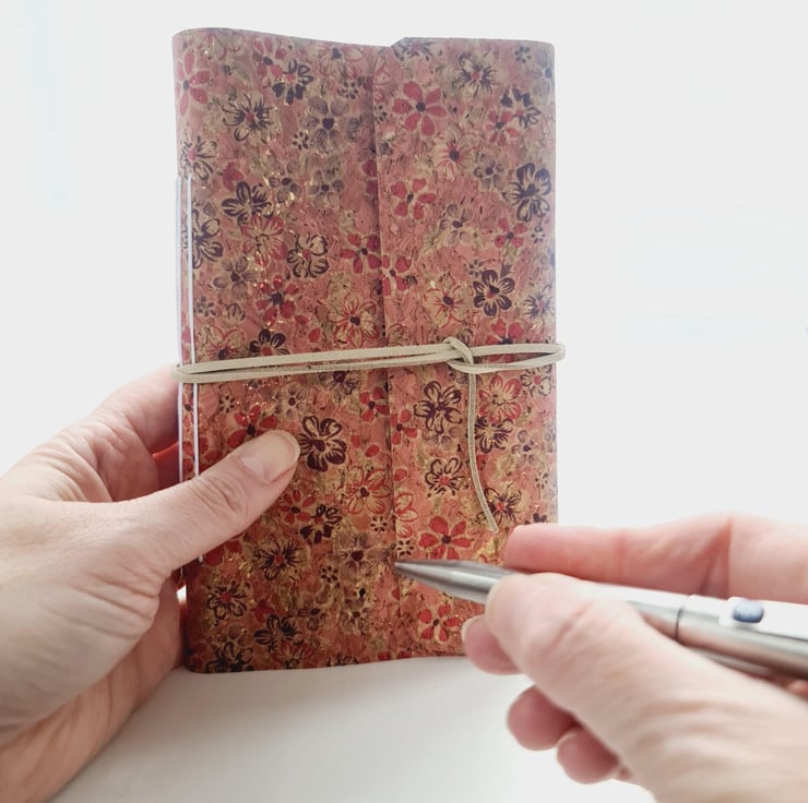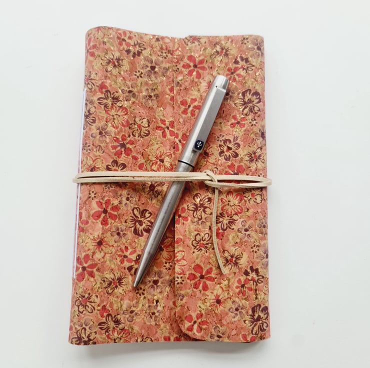 Cork fabric is tactile, strong, durable & sustainable. This one is in a lovely pink and cream floral print with a metallic fleck underneath. Whether you're jotting down Grandma's secret pie recipe, sketching the birds in the back garden, or just keeping track of your daily "to-dos," this journal feels right at home in your hands. It's got that rustic, down-to-earth charm that reminds you to slow down and enjoy the scribbling.