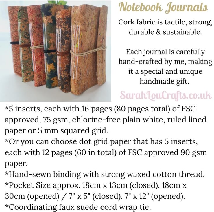Each journal is carefully hand-crafted by me, making it a special and unique handmade gift.