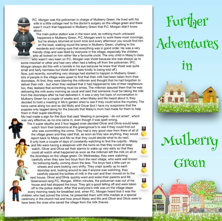 You can read my stories about Mulberry Green on my Facebook and Instagram pages - Maisy Muffin Rag Dolls or alternatively, you can find all of my stories on my Pinterest board - Mulberry Green stories