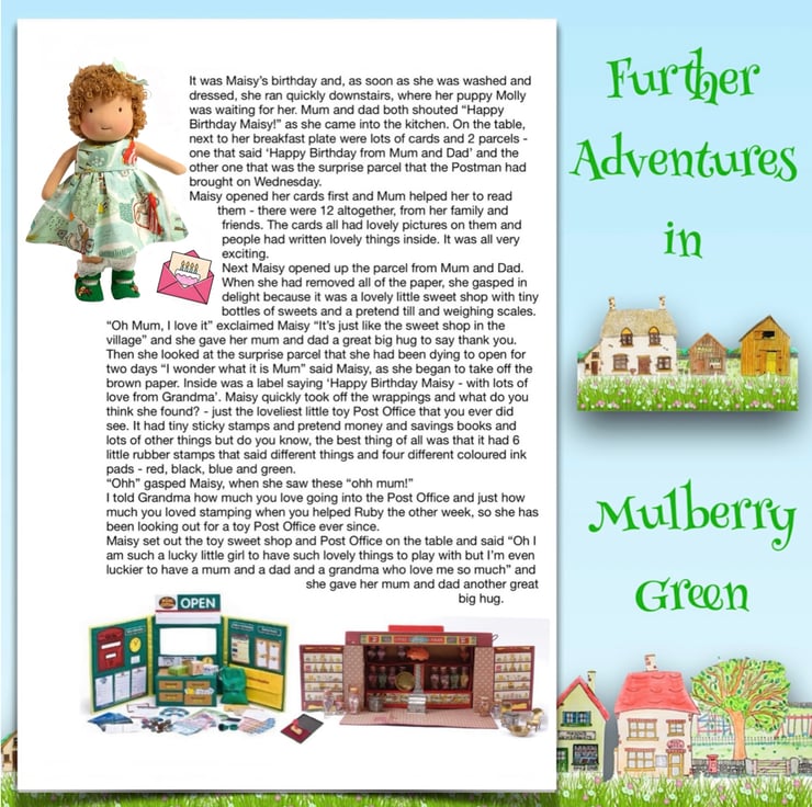 You can read my stories about Mulberry Green on my Facebook and Instagram pages - Maisy Muffin Rag Dolls or alternatively, you can find all of my stories on my Pinterest board - Mulberry Green stories