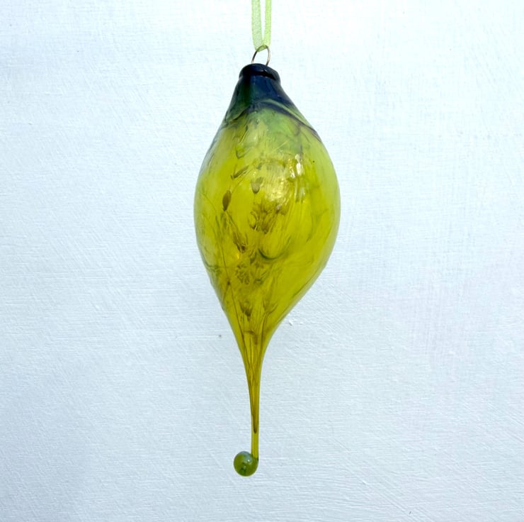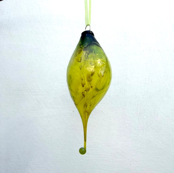 Beautiful blue/ green botanical lamp worked blown glass bauble.