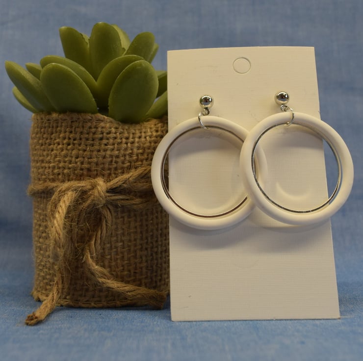 Brighten your style with these handmade dangle earrings. Their circle design and metallic ring add flair to any outfit. Lightweight and comfortable, each earring features a metallic stud post for an elegant touch.