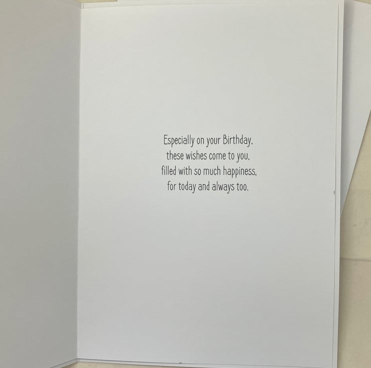 The dimensions of the card are approximately 17.5cm x 12.5cm (7 inches x 5 inches). The card will arrive in a sealed wrapper, together with a white envelope.