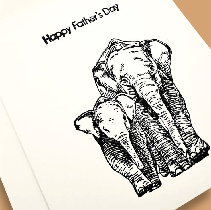 Hand stamped Father's Day card with parent and child elephants.