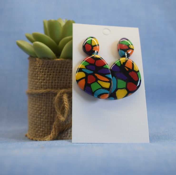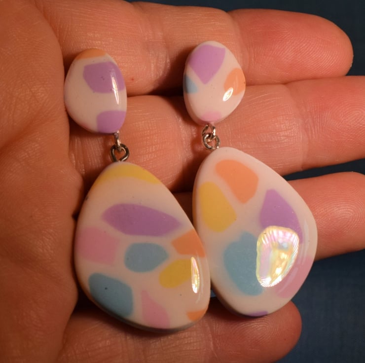 Bring a pop of playful elegance to your day with these Pebble Drop Earrings. Each pair features a terrazzo-style mosaic in soft pastel tones of lilac, peach, yellow, and blue - perfect for spring wardrobes and summer smiles.