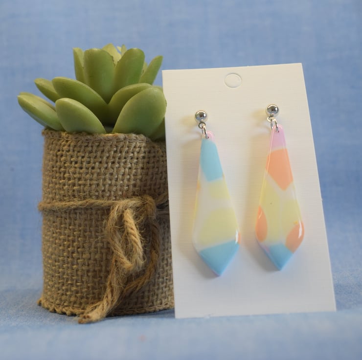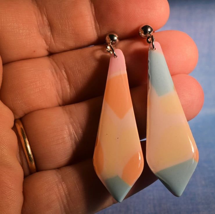 Elegant and contemporary, these handcrafted Diamond shaped earrings add a fresh touch to any look. Their geometric design paired with soft pastel or bright colours makes them both artistic and wearable.