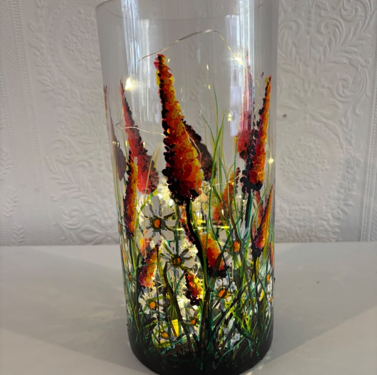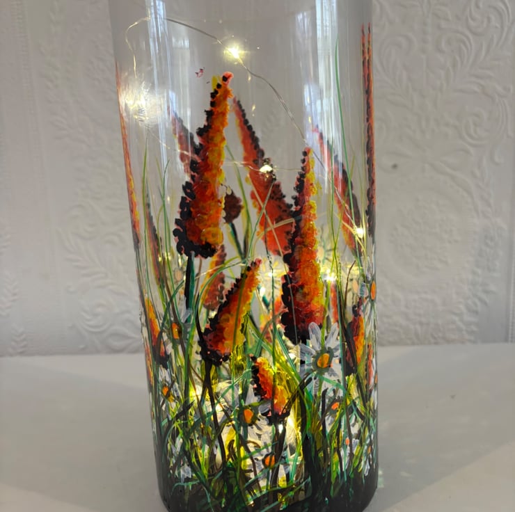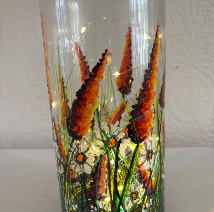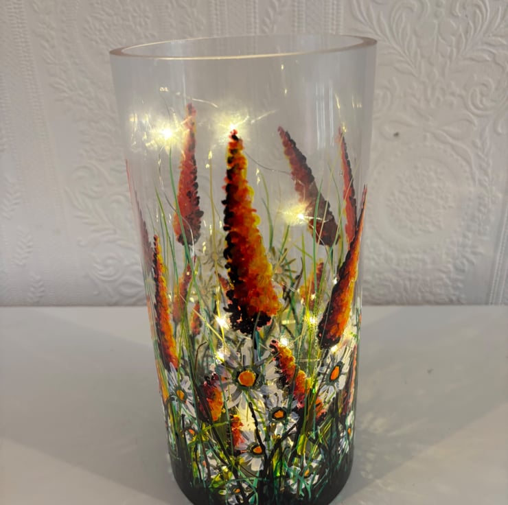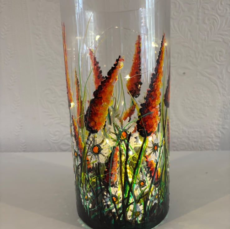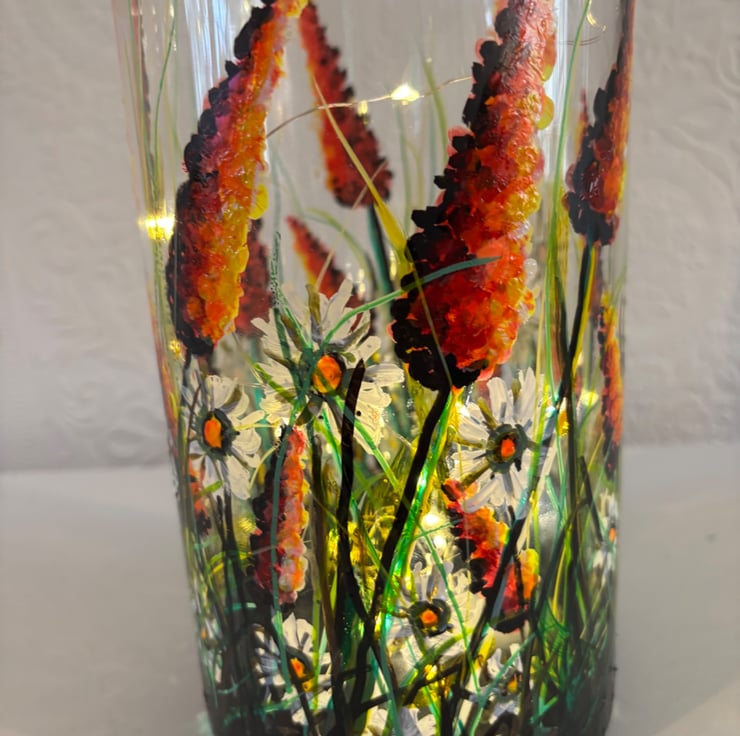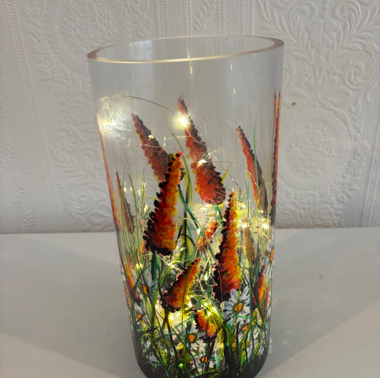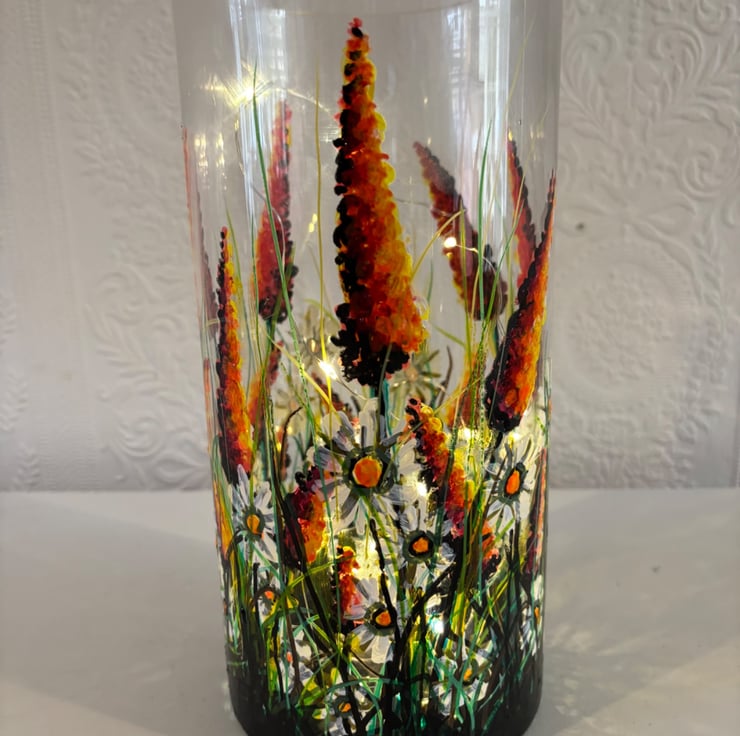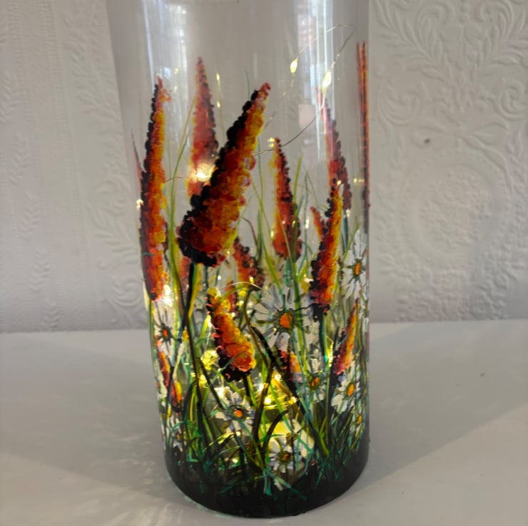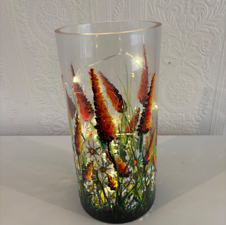 A hand painted and fired quality glass vase by Andrew Jenkins