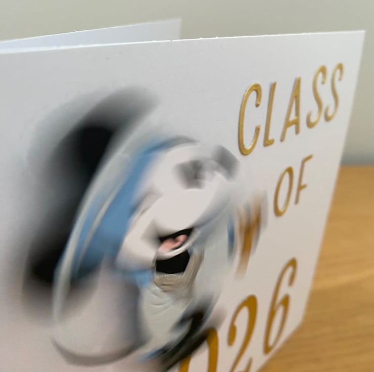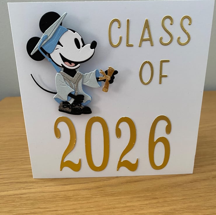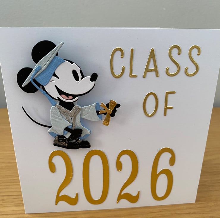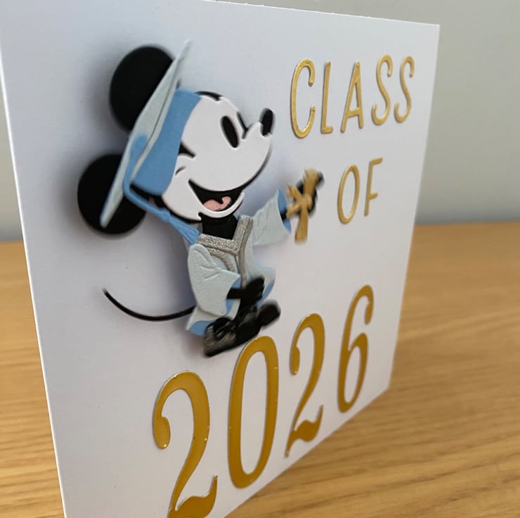 Celebrate their next chapter with this cute, Disney inspired graduation card featuring a joyful wobbling character and gold Class of 2026 lettering. Perfect for school leavers, uni grads, new job starters anyone moving forward with pride.