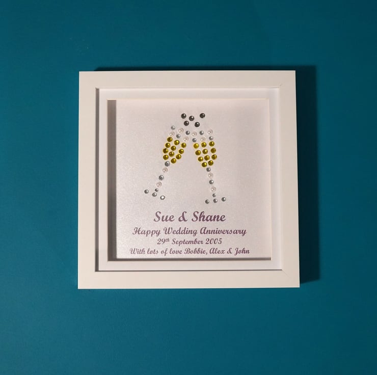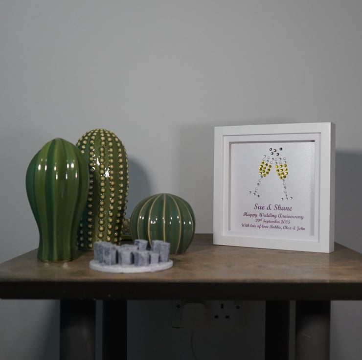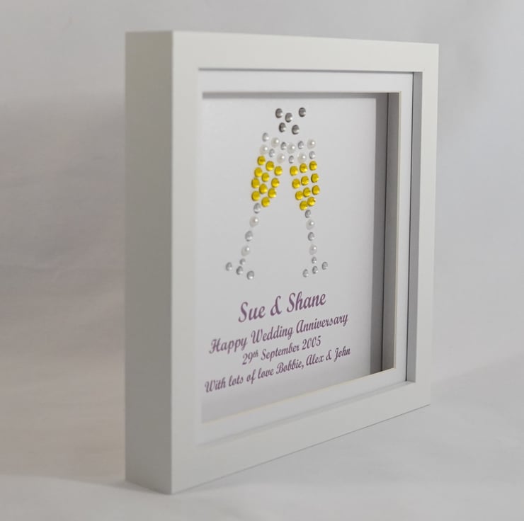 Celebrate love with this elegant personalised champagne glasses frame - the perfect wedding anniversary gift for couples who cherish meaningful keepsakes.