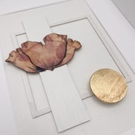 Materials: Dried tulip petals from my Finnish garden, Finnish birch, gold leaf, freshwater pearls and eco-label acrylic.