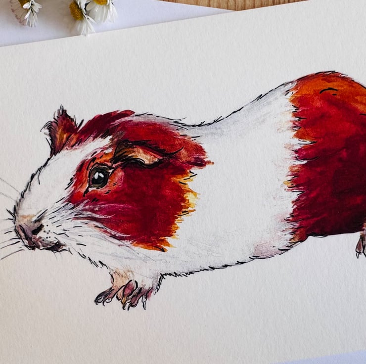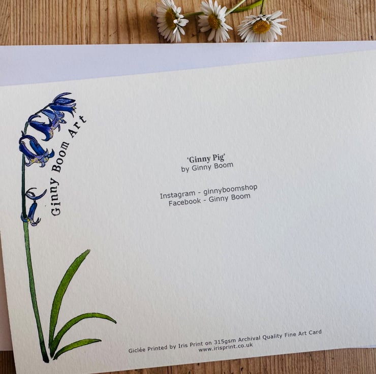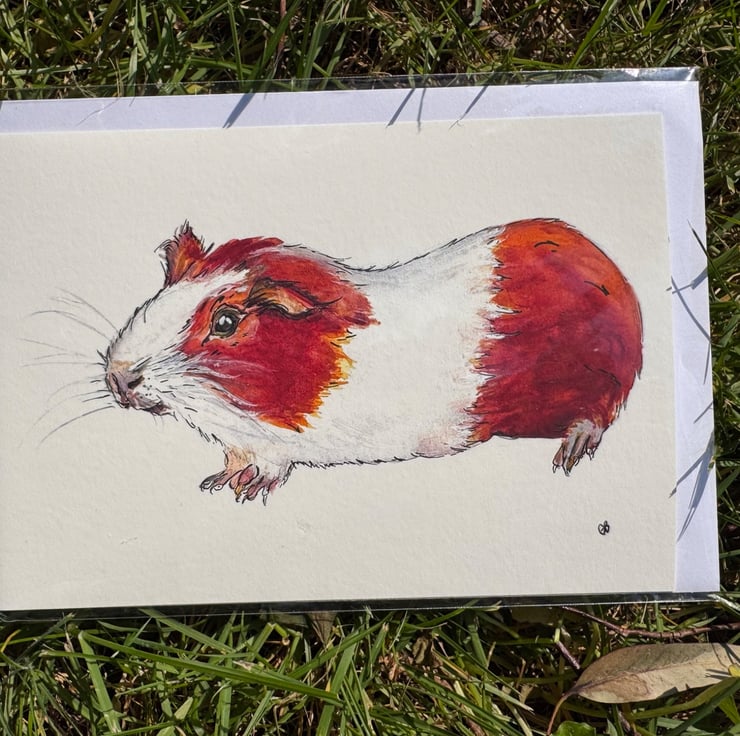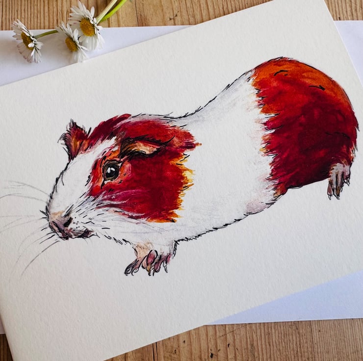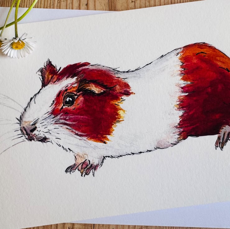 Guinea Pig watercolour illustration, by Ginny Boom, sold with a white envelope.