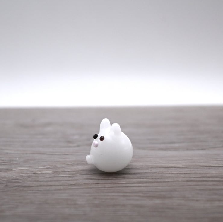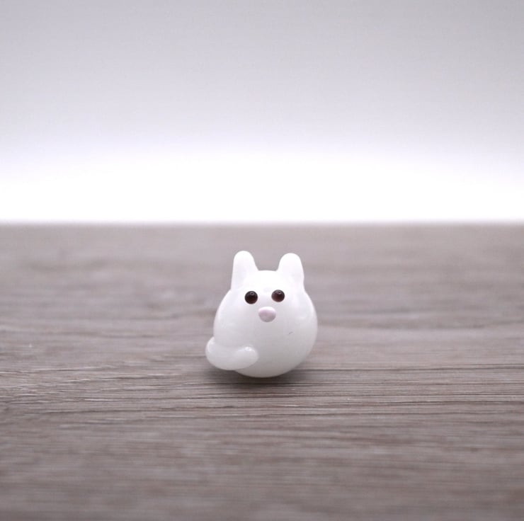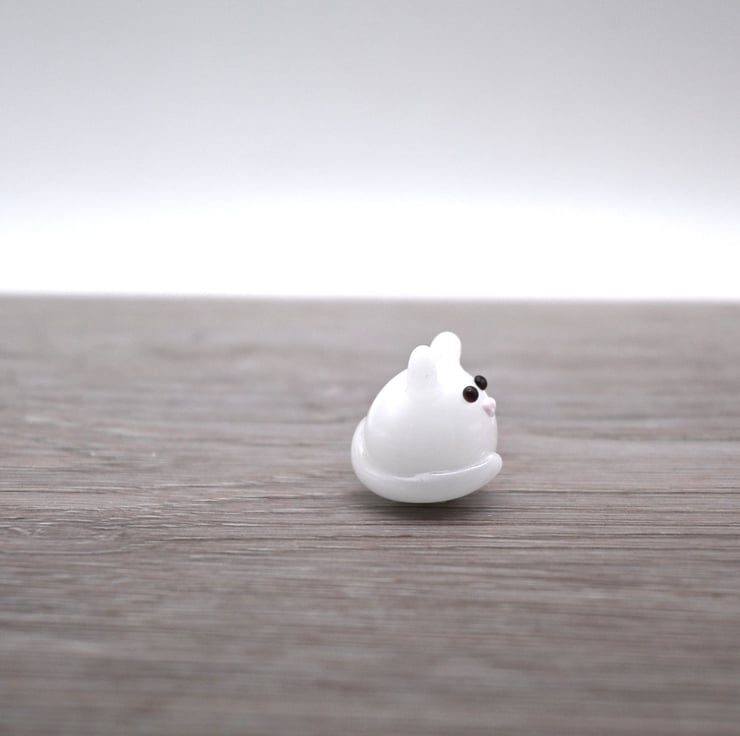 A small glass cat made by hand using a technique called lampworking.