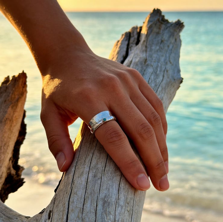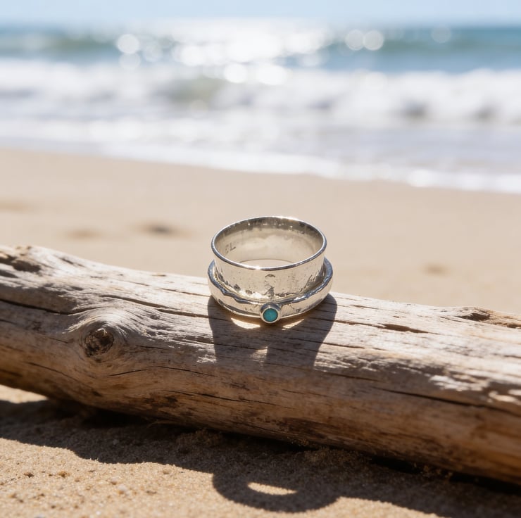 Whether worn as a fidget ring, a birthstone ring, this design blends craftsmanship, sustainability and coastal inspiration.