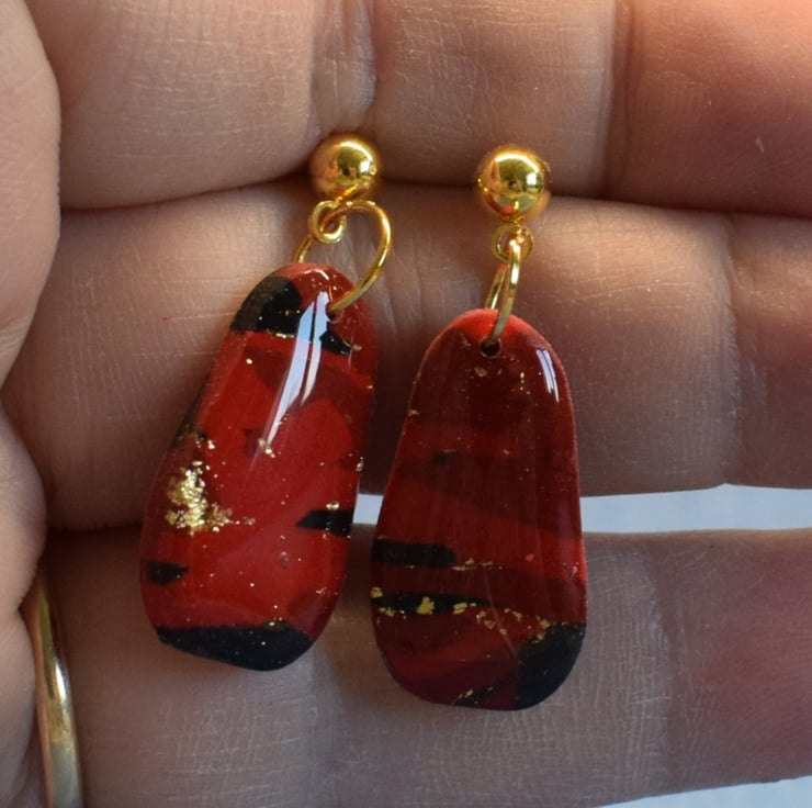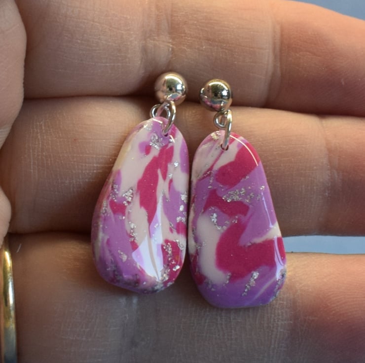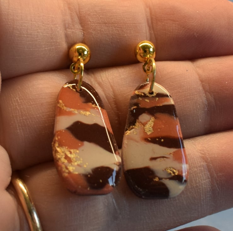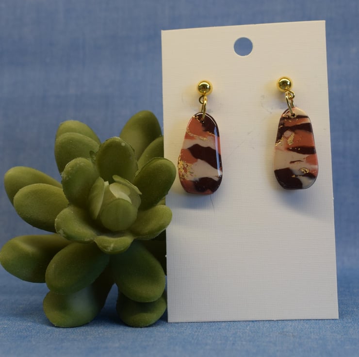 These Drop Earrings blend shades of colour and metallic foil for a fresh, breezy finish. Their organic pebble-like shape makes them effortlessly modern and versatile.