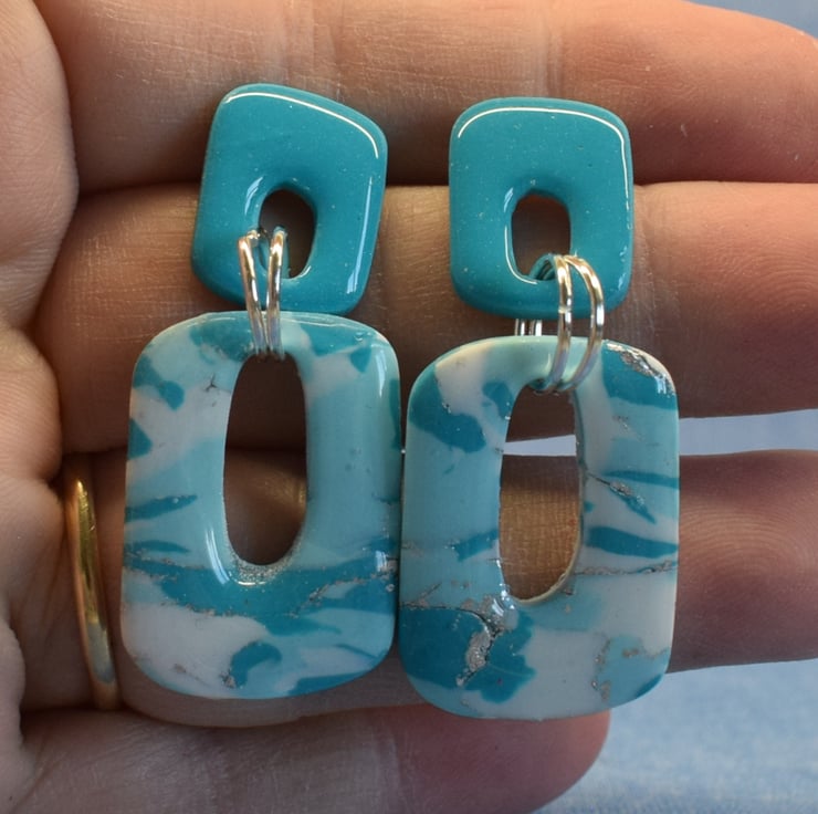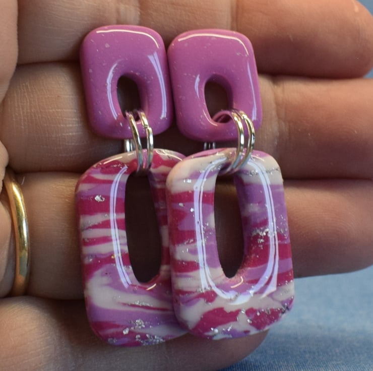 Meet the Window Earrings! These bold, modern rectangles have a glossy finish and metallic flecks that add shine and elegance, making them perfect for statement wear