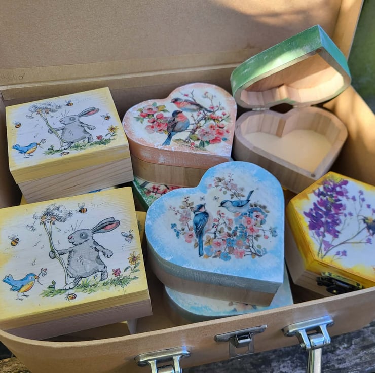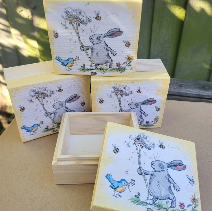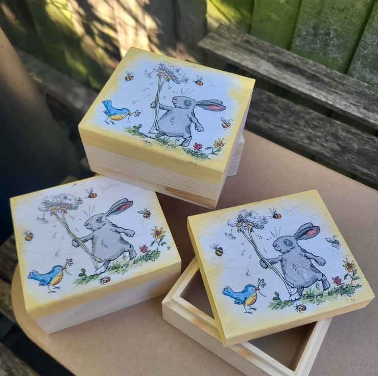 Sweet Bunny & Bluebird Small Wooden Keepsake Box