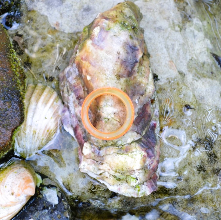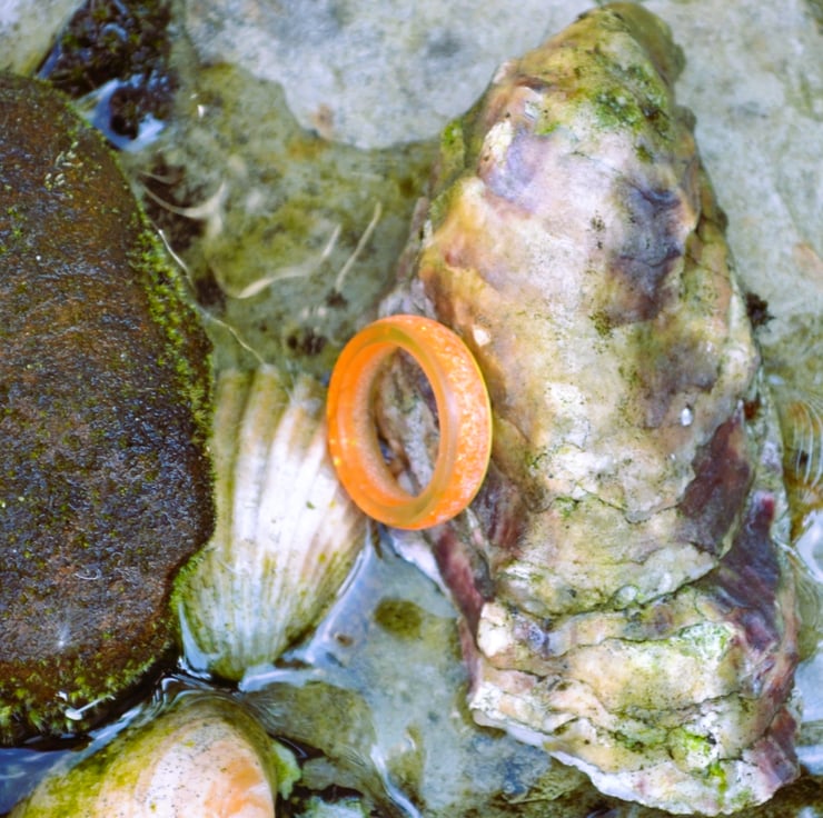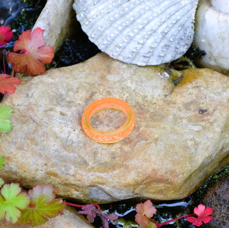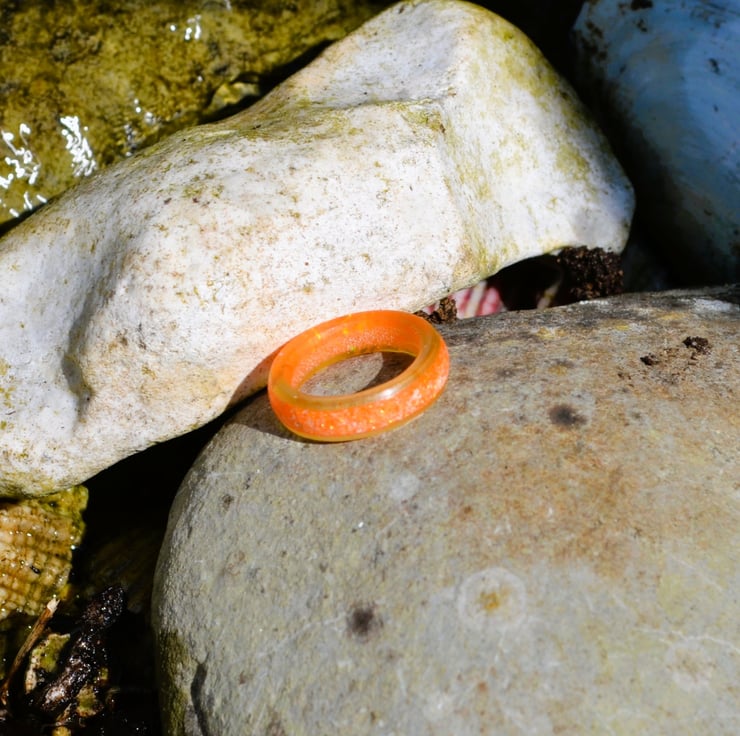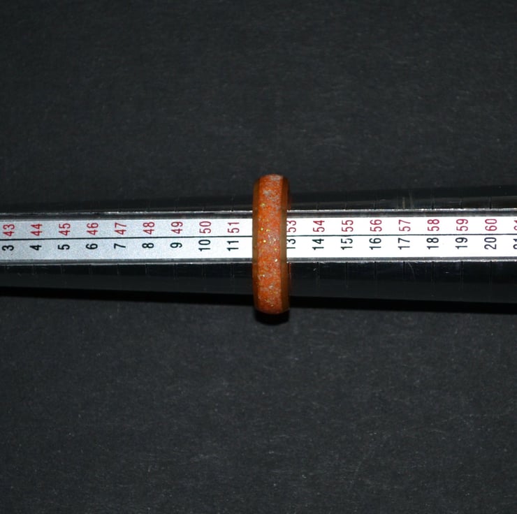 Orange Banded Resin finger ring. Finger size M, Diameter 23mm, width 5.5mm.