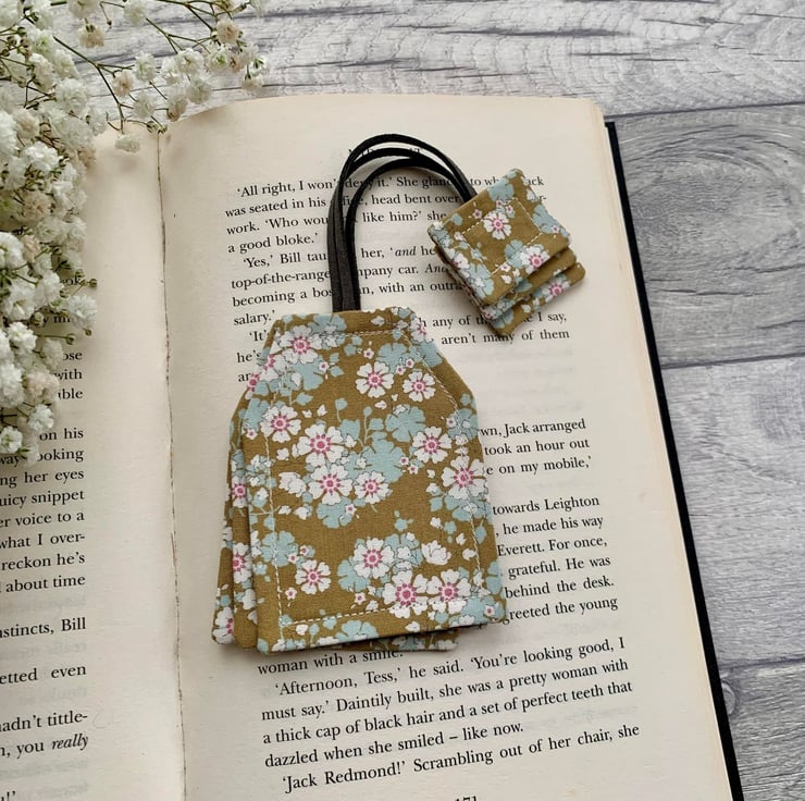 A green floral tea bag bookmark, a fun gift idea for a book and tea loving friend.