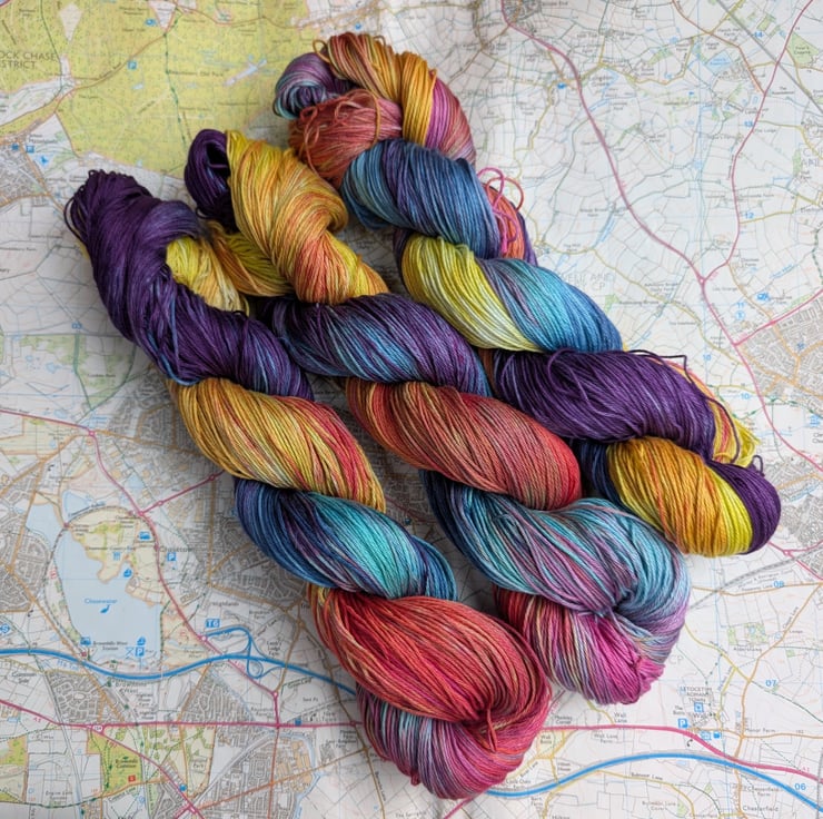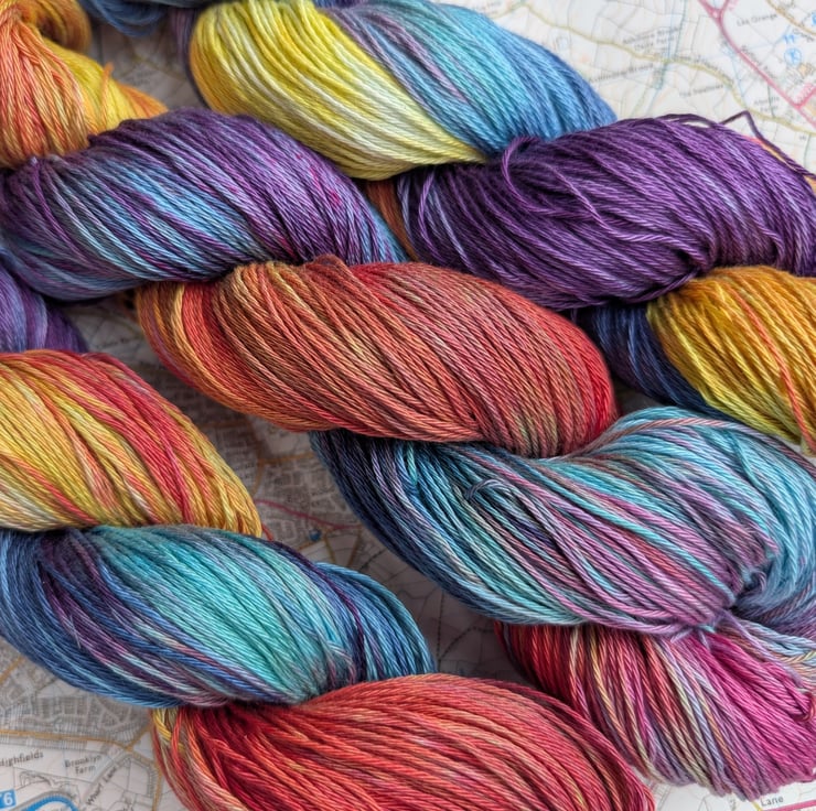 Bold and bright colours on soft pima cotton 4 ply.