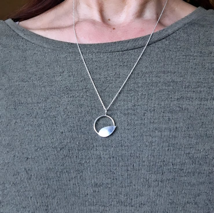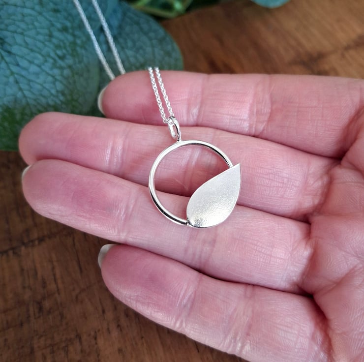 The pendant is about 2.5cm big and made with Fine Silver (99.9% silver) as well as Sterling Silver, the 22" long chain is made with Sterling Silver.