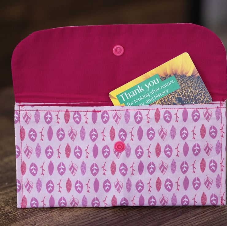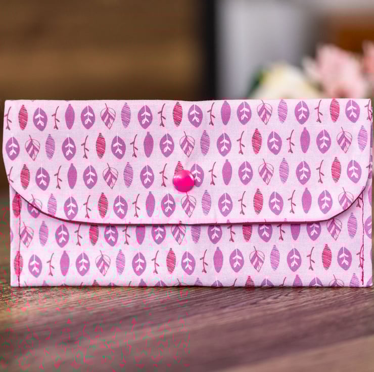 Wallet Purse Leaf Design. The coin purse has a lovely pink leaf design. The lining is a plain shocking pink fabric