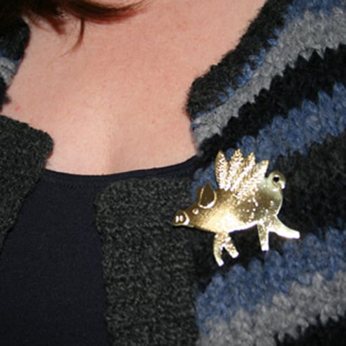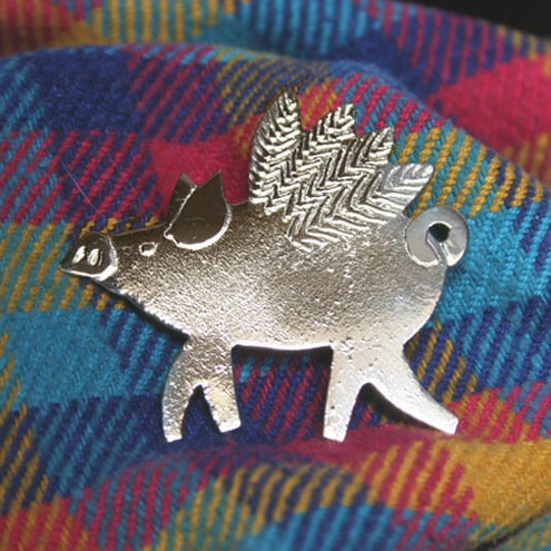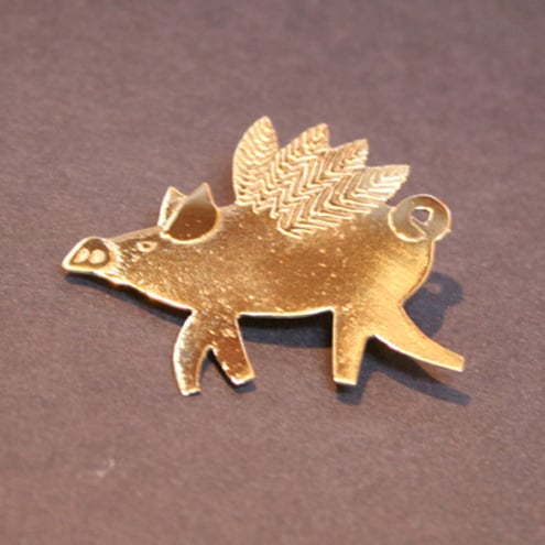 If pigs could fly....a brooch made by hand from a lovely gold coloured sheet brass.
