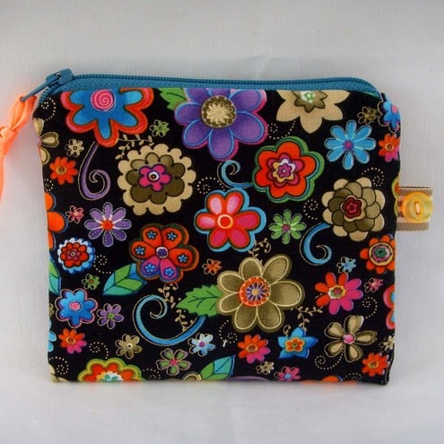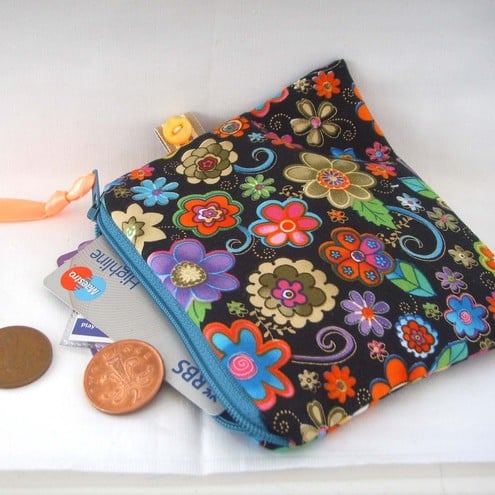 Cute little coin purse with contrasting zip, ribbon and lining.