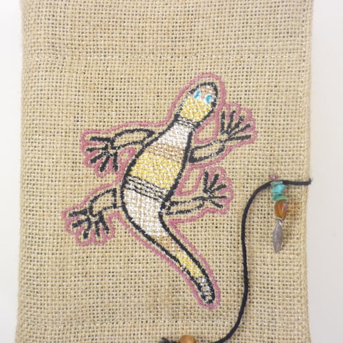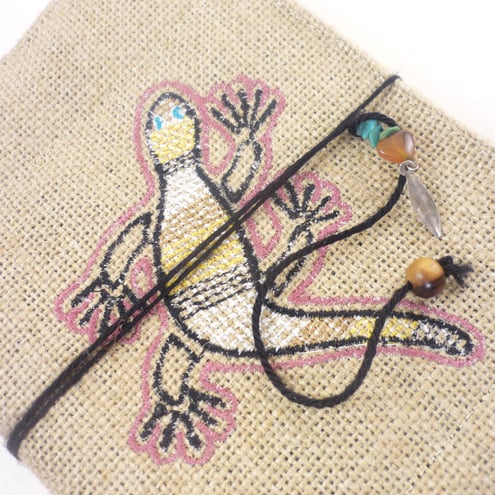 I made this journal embroidering a tribal style gecko on natural jute fabric......