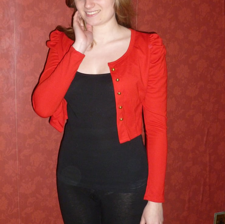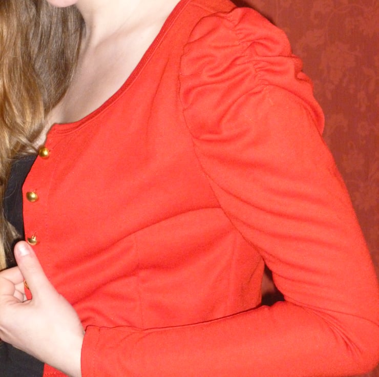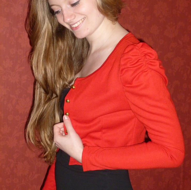 This is a really cute little cropped jacket. I decided to make it in a nice bright red for a change! Berry Christmasey!!