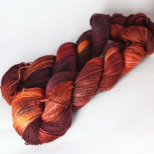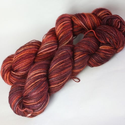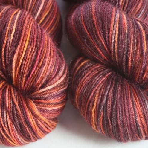 Shades of orange, chestnut and browns, this superwash yarn has a smoother texture than the non-superwash equivalent.