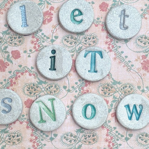 Individually handmade ceramic fridge magnets, reading "Let It Snow". Each letter is stamp with my vintage stamps, and coloured using lovely coloured under glaze, then finished in my trade mark crackle glaze. The magnets come packaged with lovely vintage style paper backing.