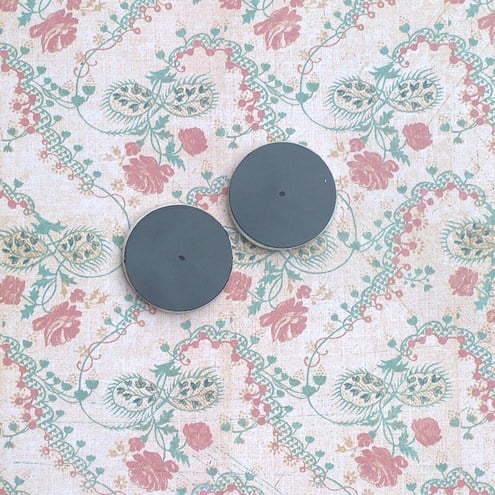 Each ceramic button is magnetic on the back, the larger measures 3cm in diameter, the smaller ones 1cm diameter.