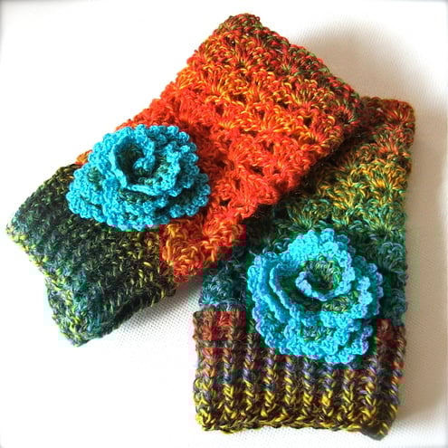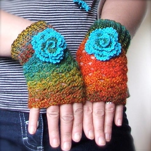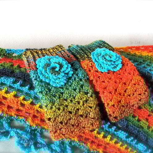 Beautiful crocheted set of fingerless mittens and triangular shawl great for a gift for your daughter, mother and girlfriend...