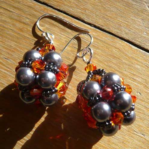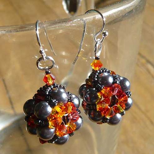These earrings are made of glass beads and Swarovski beads with silver plated earwires.