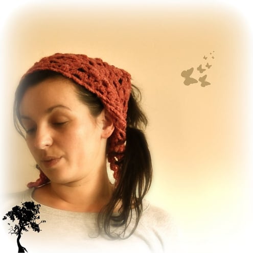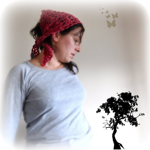 This lovely triangular shawl can easily work as a headband if you don't like wearing hats