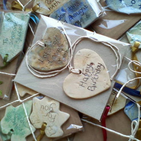 Set of 2 handmade ceramic gift tags - ideal for attaching to presents to add that additional sentimental touch. Not only are these tags personalised gifts in themselves, they are also sentimental keep-sakes.