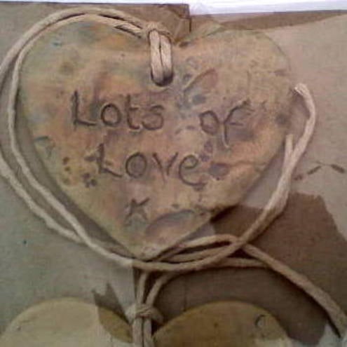 Each tag is an individual one-off, measuring 6cm x 3cm, handmade by cutting to shape, smoothing, impressing textures/engraving words, glazing and firing.