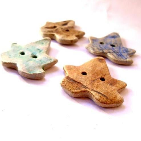 Each button is individually handmade with love! They are cut to size, impressed with a pattern, smoothed around the edges, pierced with 2 holes, glazed and fired.